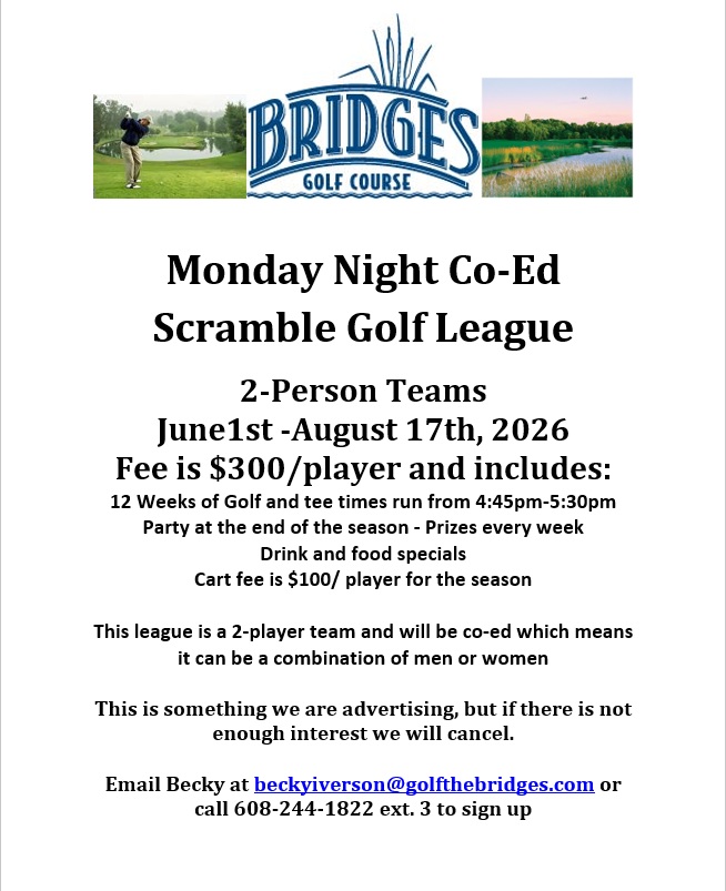 It’s that time of the year to get yourself signed up for leagues during our 2026 season. Information on all leagues are available under the league tabs. Also feel free to email beckyiverson@golfthebridges.com with any questions to learn more about leagues for the upcoming 2026 season.